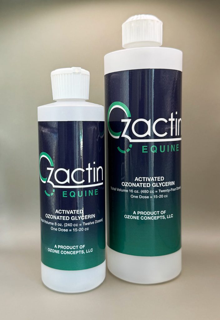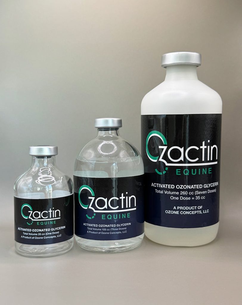 Ozactin O3G Injectable has been shown to benefit a horses bone, soft tissue, joint, digestive and respiratory tract, skin, hair neurologic tissue, and shows to relieve symptoms of neurologic diseases as well as improve the well-being of horses affected by Navicular Syndrome, Laminitis, Metabolic Syndromes, Bleeder Syndrome, Respiratory Issues, Immune Compromise, Cancer, Hives, DSLD, Allergies, Chronic Lyme and other Protozoal Infections.
